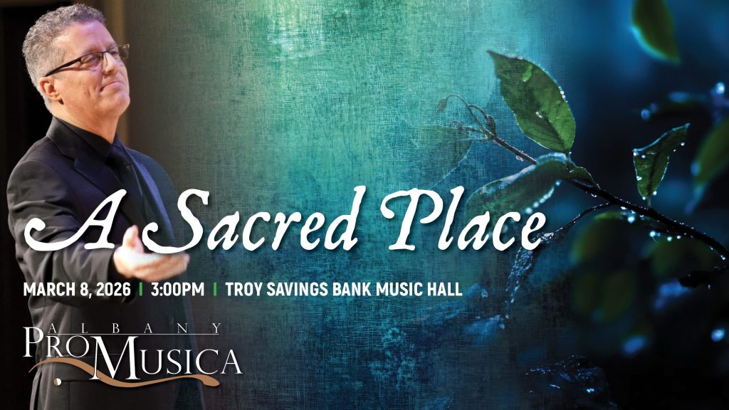 A Sacred Place explores the intersection of love and nature through works by Ešenvalds, Boykin, Paulus, Rutter, Pärt, and others. The singers of Albany Pro Musica will be joined by the Cantus Trio, with pianist Noah Palmer, violinist Jamecyn Morey, and cellist David Bebe. Featuring the N.Y. premiere of Alex Berko’s “Sacred Place,” an ecological service that connects the old with the new, the sacred with the secular, and the individual with their community.